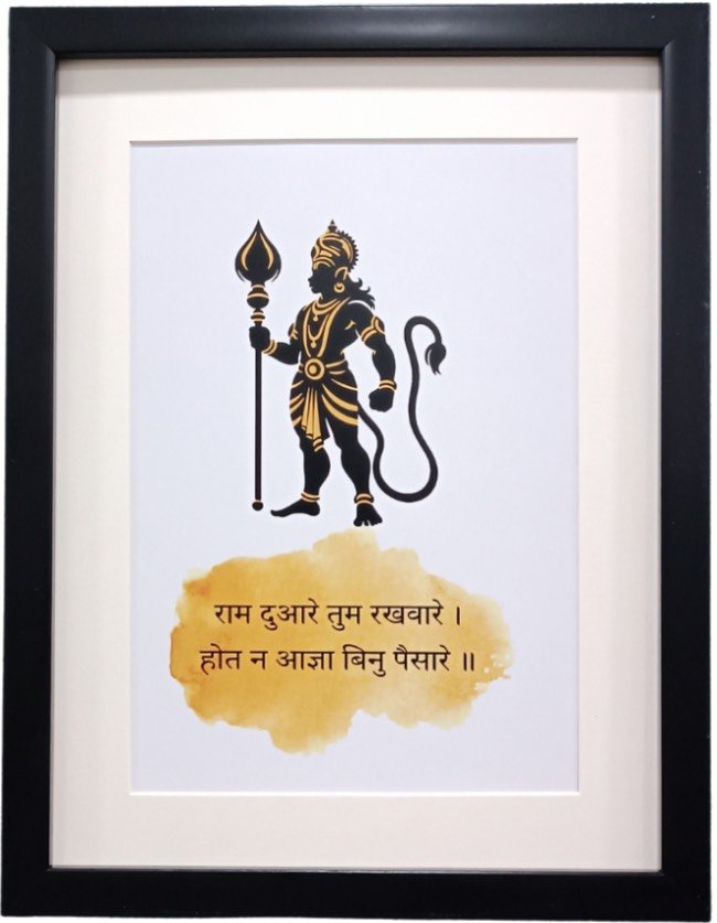 At Tulja, we blend devotion with artistry to create sacred, elegant photo frames that bring the divine presence of Lord Hanuman into your daily life. Our carefully crafted frames feature powerful depictions of Hanuman Ji whether in serene meditation or mighty golden-black form paired with verses from the Hanuman Chalisa, all encased in sleek, minimalist designs.
